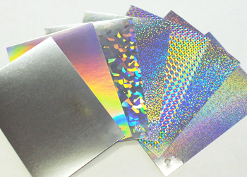 既成のメタリックペーパーよりもコストメリットのある「ホログラムラミネート加工」を、